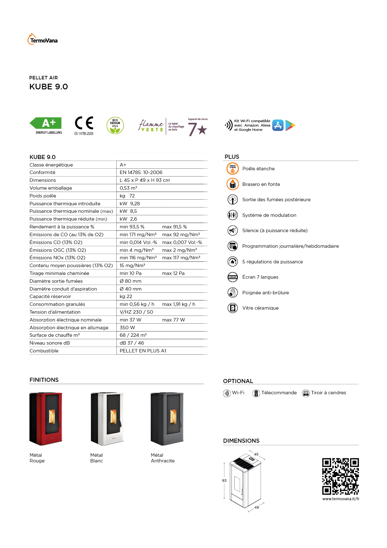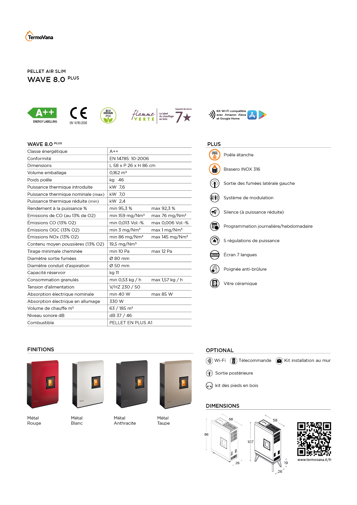 Les poêles Termovana disposent du WiFi optionnel pour contrôler automatiquement les fonctions avec une application disponible dans l’Apple Store et Google Play, compatible aussi avec l’assistant vocal Alexa et prochainement Google Home.